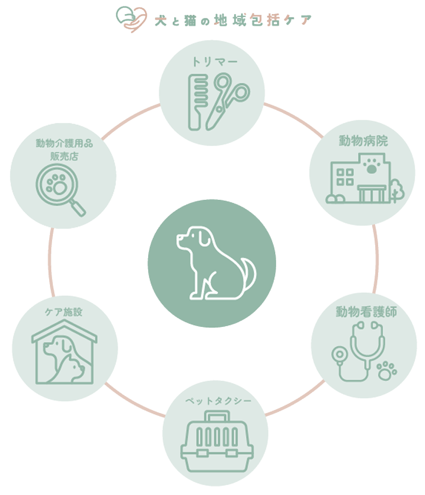 地域の動物病院および各動物関連事業者が協力してケアにあたります。